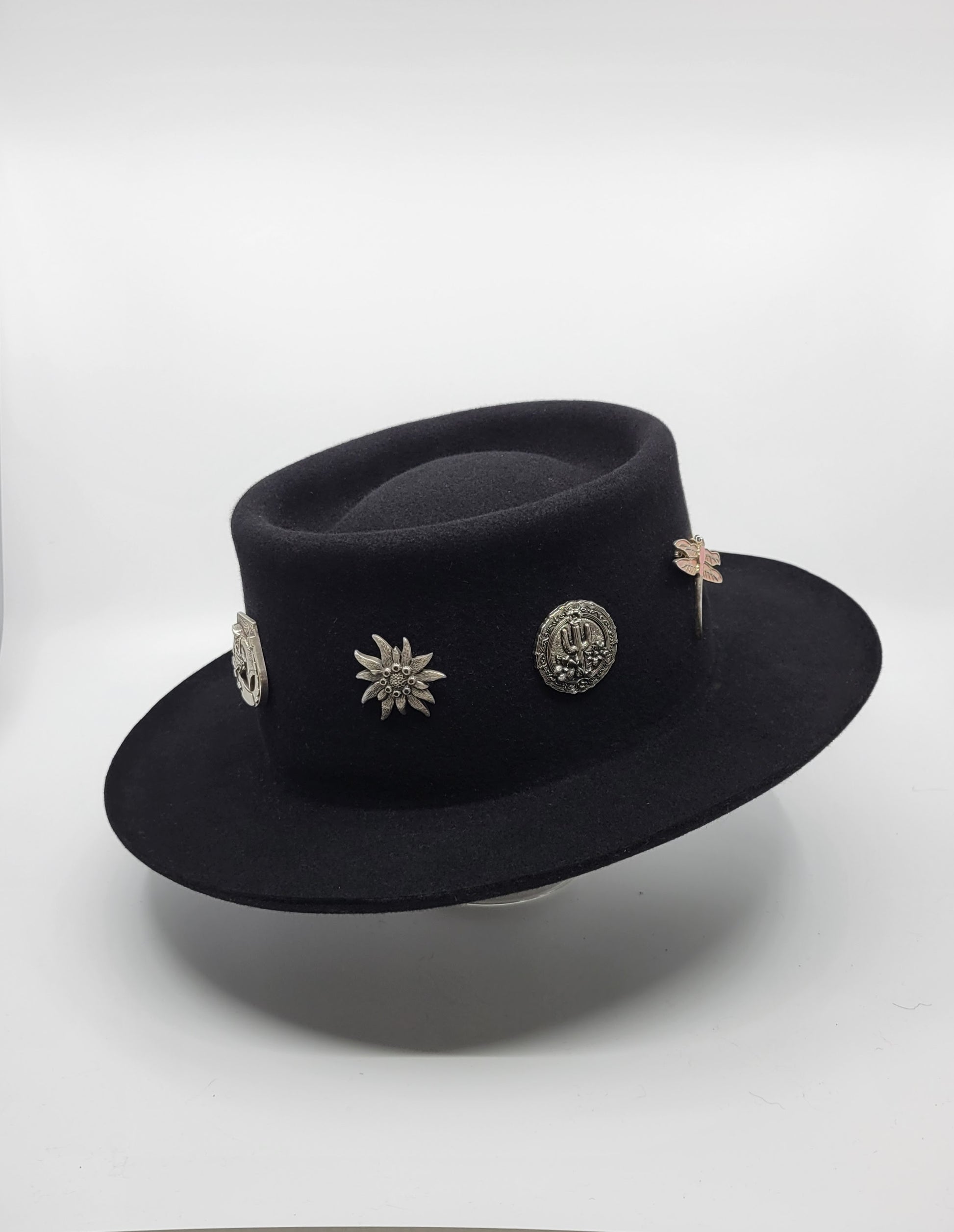 To prolong your hat’s life, regular brushing is important (avoid a nylon brush). To remove dust from the hat, simply use a damp (not wet) cloth. To remove fuzz and hair, use a piece of sticky tape to gently wipe the hat. Try to store your hat elevated, e.g. on a hat cone or get creative, like on roll or paper towels.
