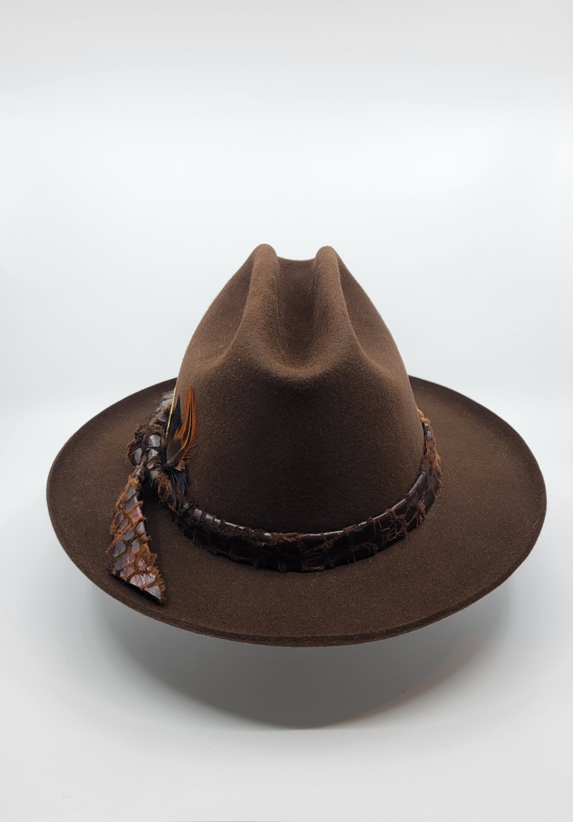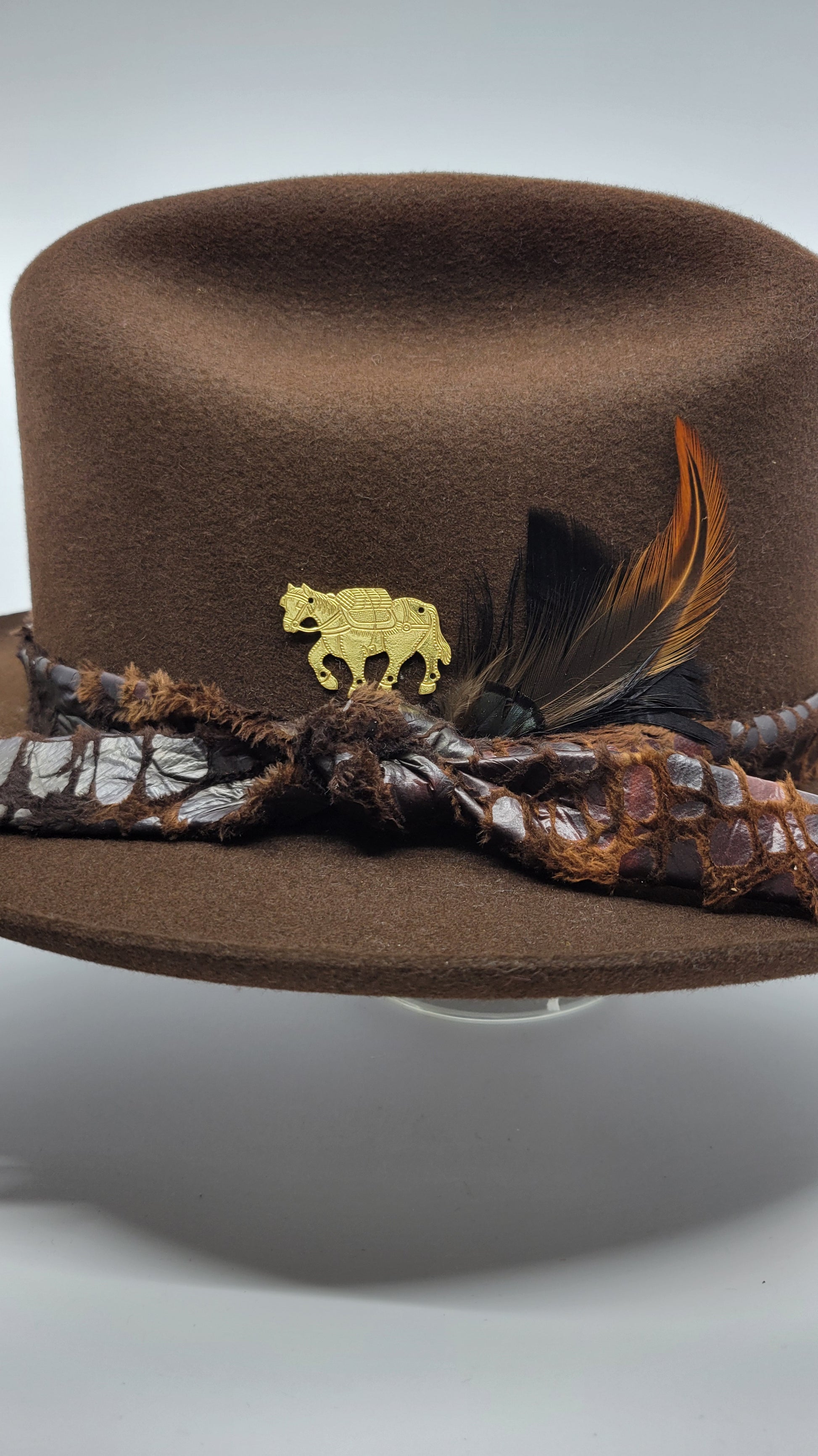 To prolong your hat’s life, regular brushing is important (avoid a nylon brush). To remove dust from the hat, simply use a damp (not wet) cloth. To remove fuzz and hair, use a piece of sticky tape to gently wipe the hat. Try to store your hat elevated, e.g. on a hat cone or get creative, like on roll or paper towels.