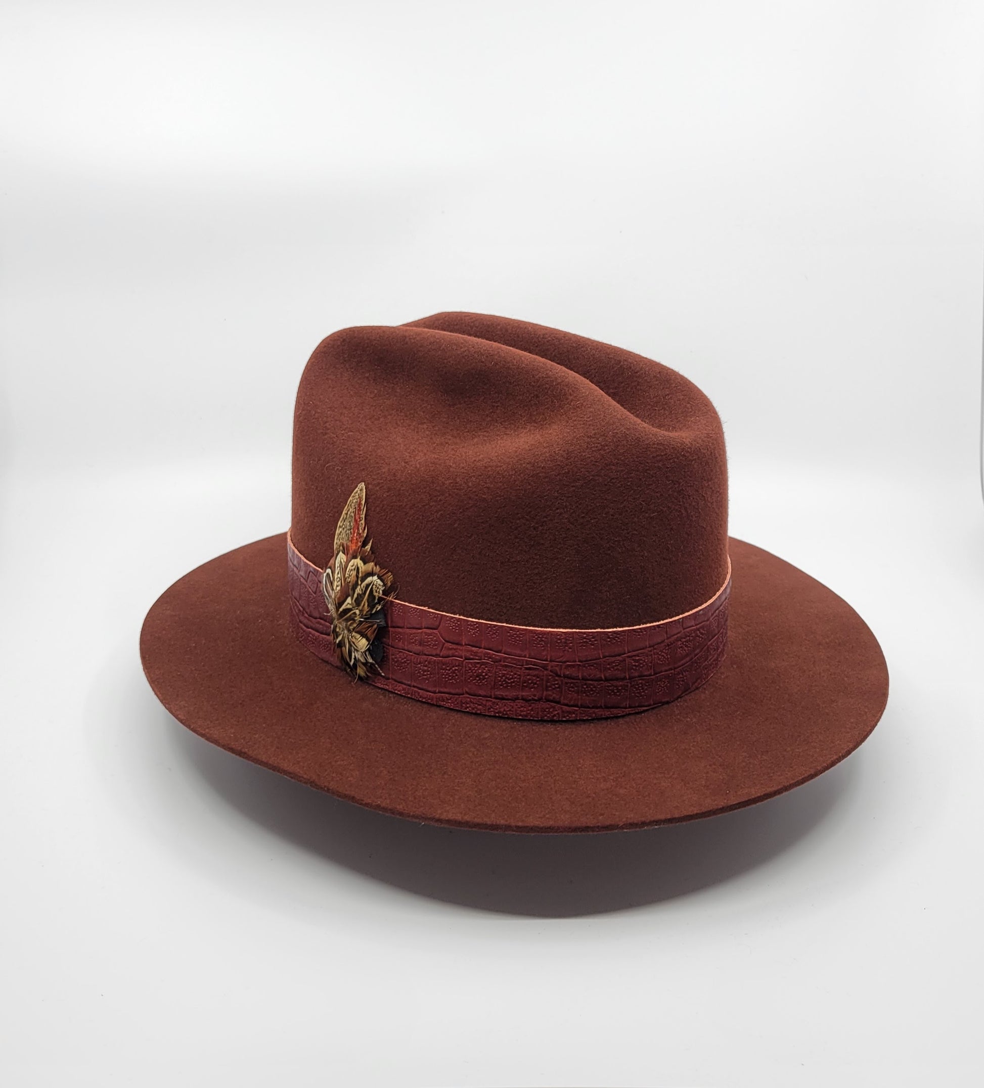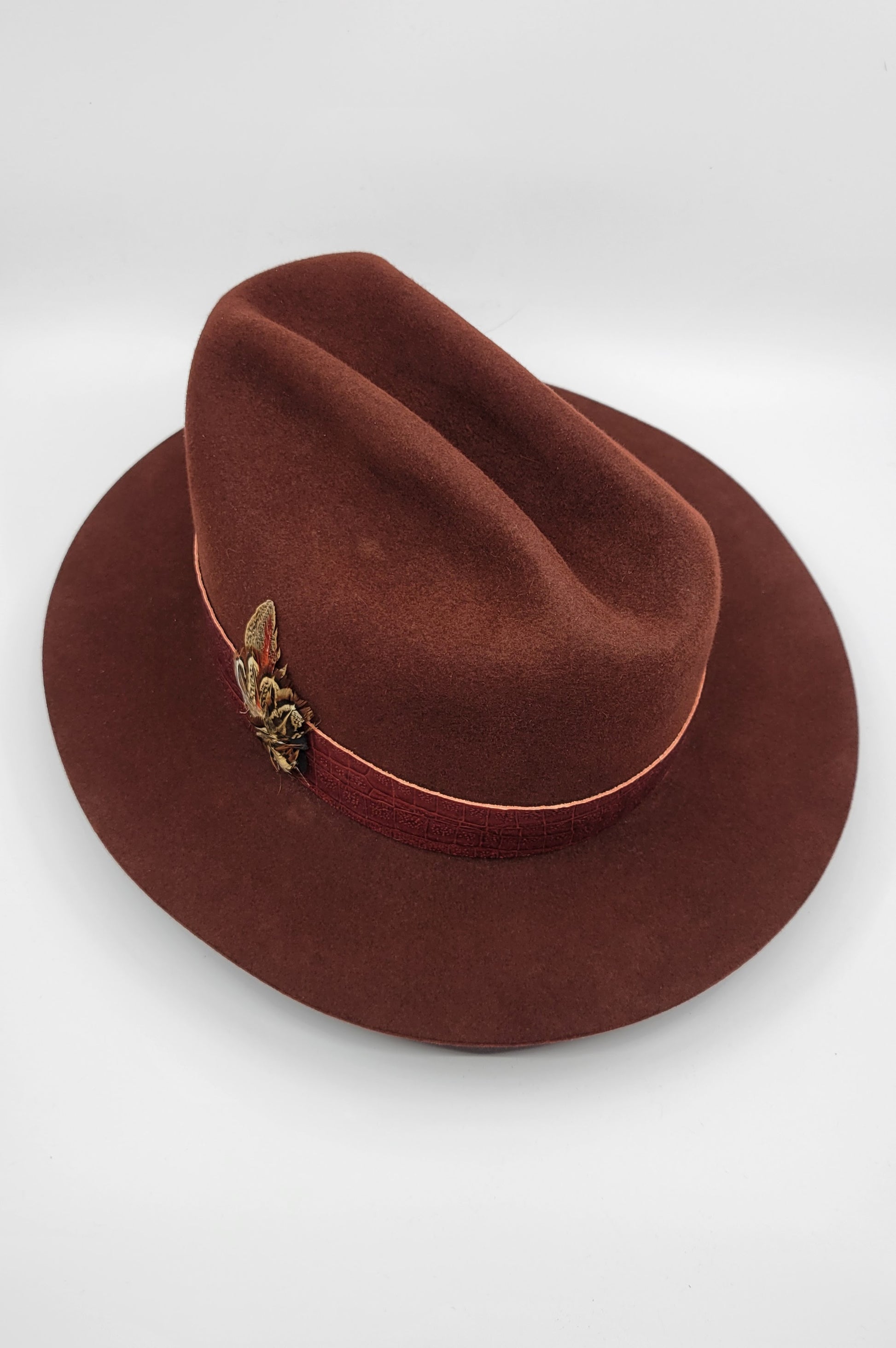 To prolong your hat’s life, regular brushing is important (avoid a nylon brush). To remove dust from the hat, simply use a damp (not wet) cloth. To remove fuzz and hair, use a piece of sticky tape to gently wipe the hat. Try to store your hat elevated, e.g. on a hat cone or get creative, like on roll or paper towels.